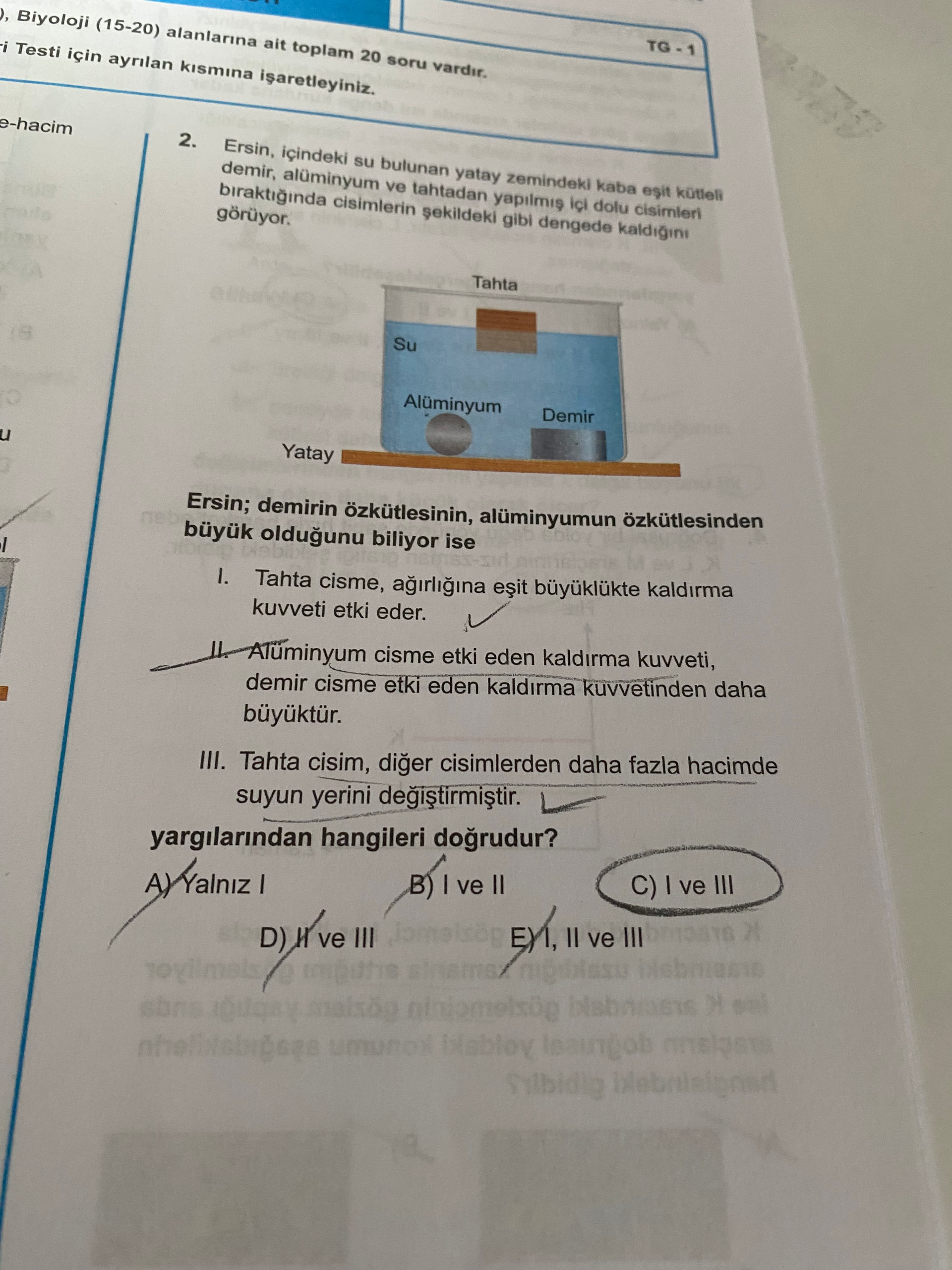 III. Tahta cisim, diğer cisimlerden daha fazla hacimde suyun yerini değiştirmiştir.