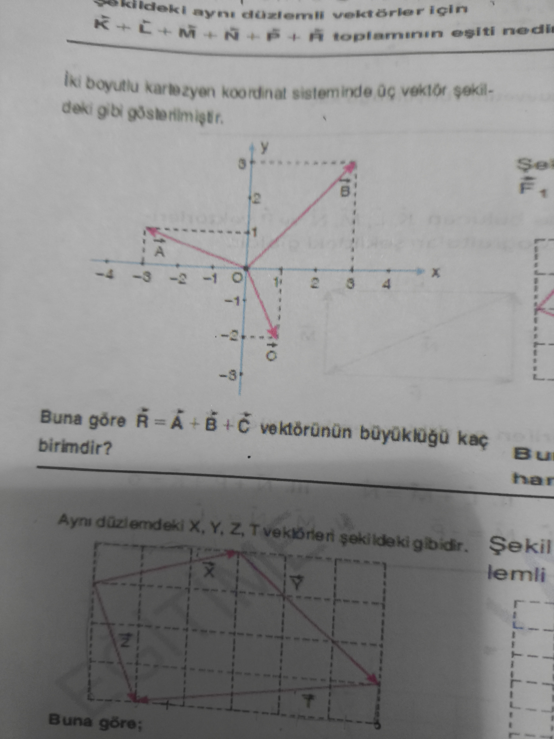 Aynı düzlemdeki X, Y, Z, T vektörleri şekildeki gibidir.