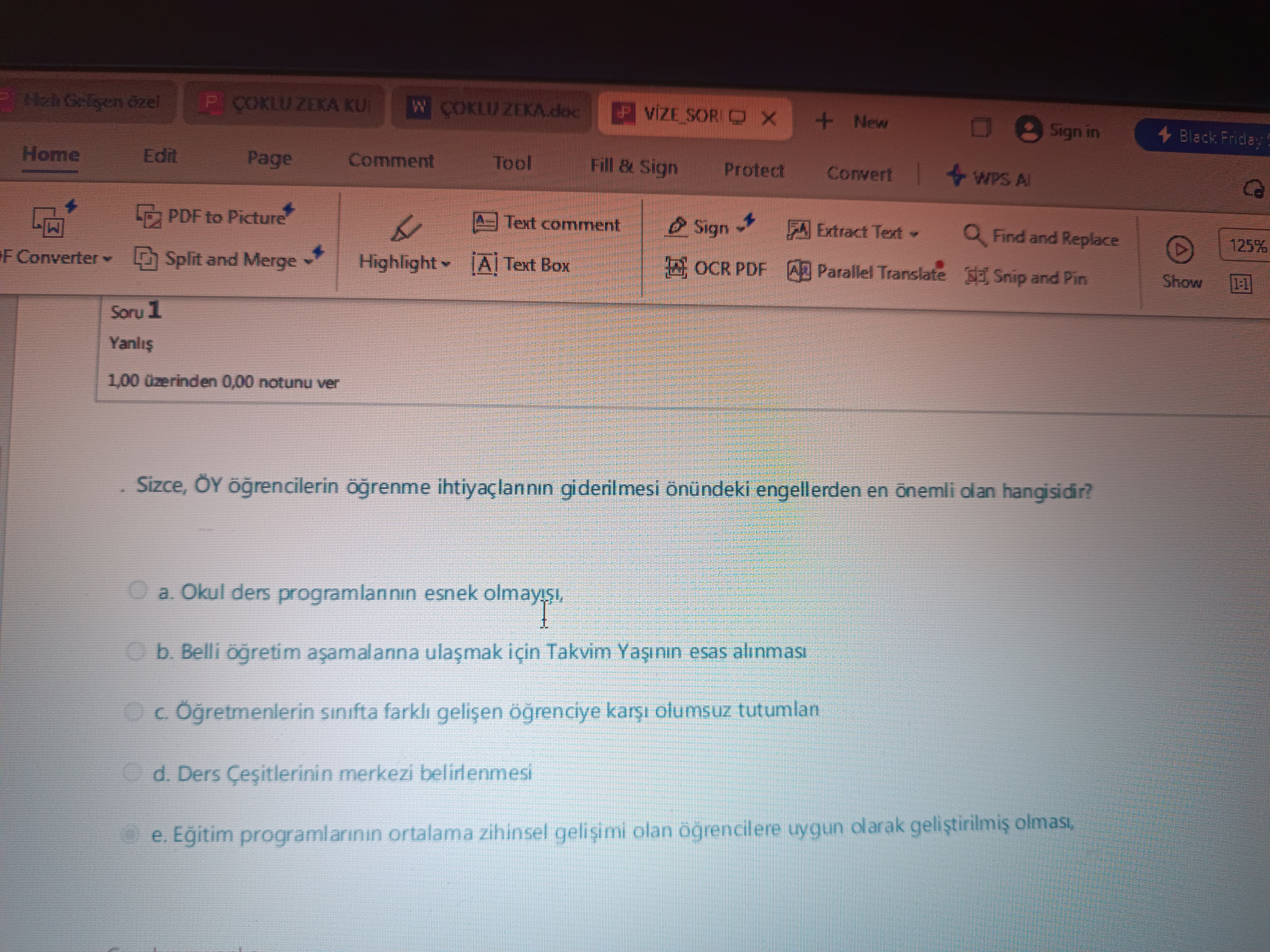 e. Eğitim programlarının ortalama zihinsel gelişimi olan öğrencilere uygun olarak geliştirilmiş olması,
