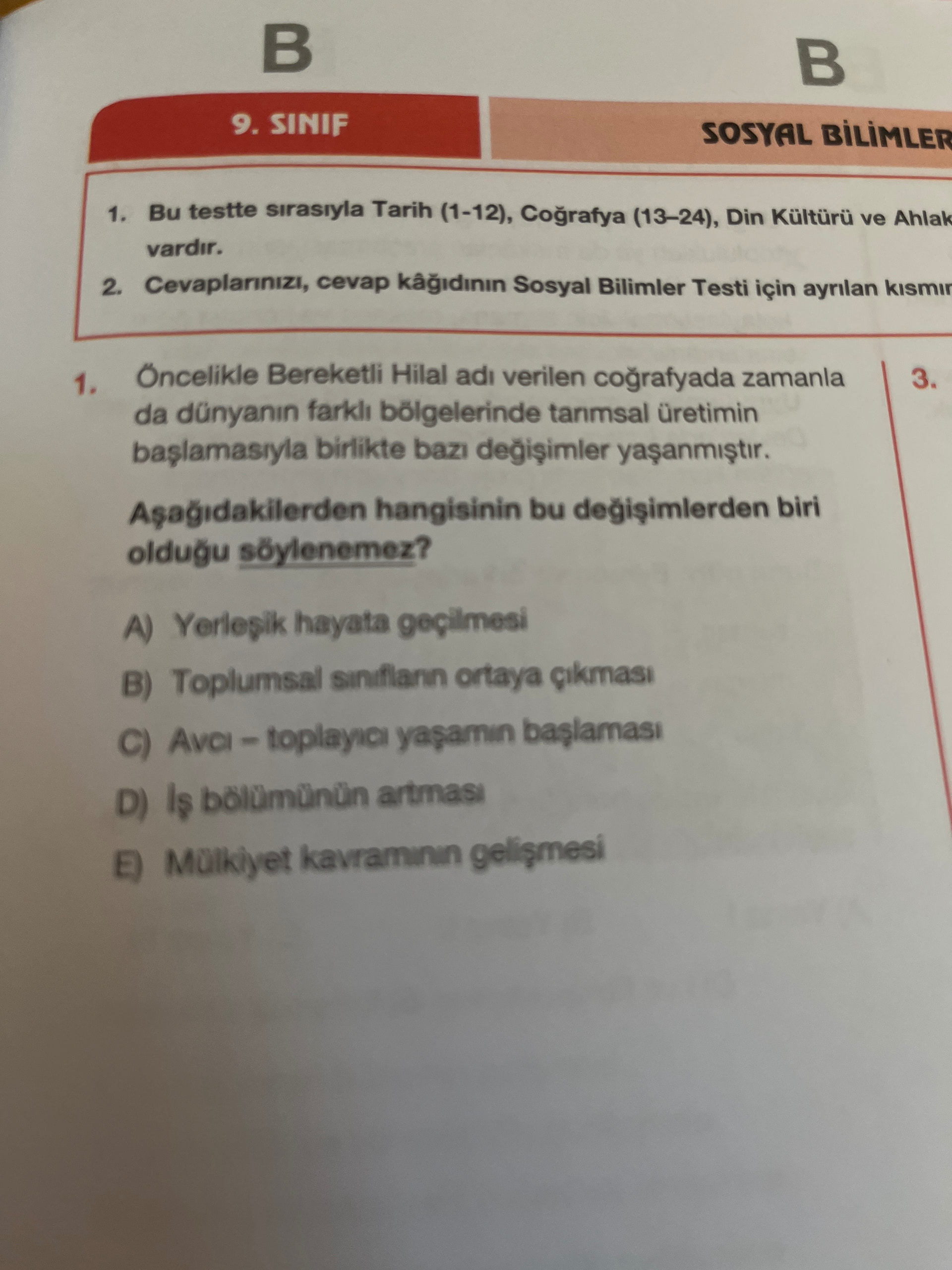 Bu yüzden tarımsal üretimle ortaya çıkan değişimlerden biri C şıkkı olamaz.
