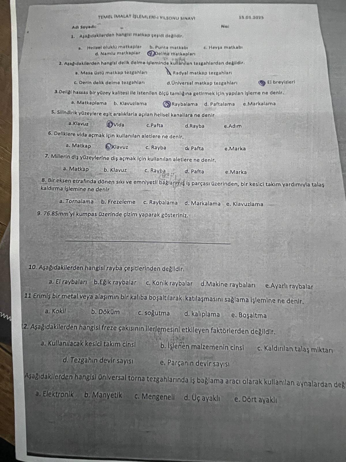 TEMEL İMALAT İŞLEMLERİ - YILSONU SINAVI