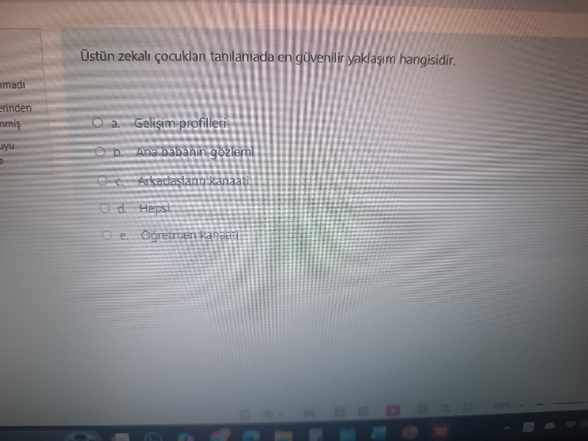 Genel açıklama: Görsel, üstün zekalı çocukların tanılanmasına yönelik bir çoktan seçmeli sınav/soru içeriyor.