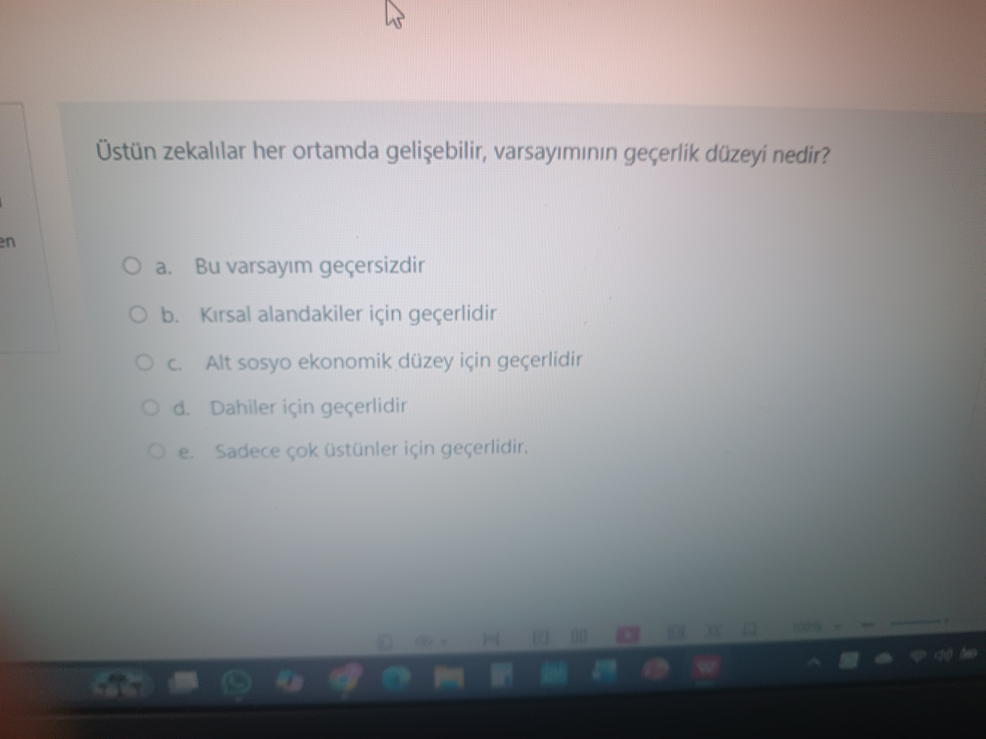- b, c, d, e: Bu varsayımın kırsal, alt sosyo ekonomik, dahiler ya da sadece çok üstünler için geçerli olduğuna dair bilimsel bir kanıt yoktur. Her ortamda gelişim için uygun çevre gereklidir.