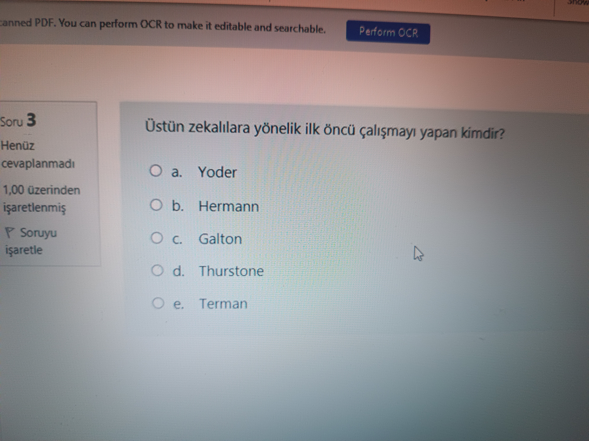 - Yoder, Hermann, Galton ve Thurstone farklı alanlarda çalışmışlardır ya da üstün zekalılar konusunda Terman kadar etkili öncülükleri yoktur.