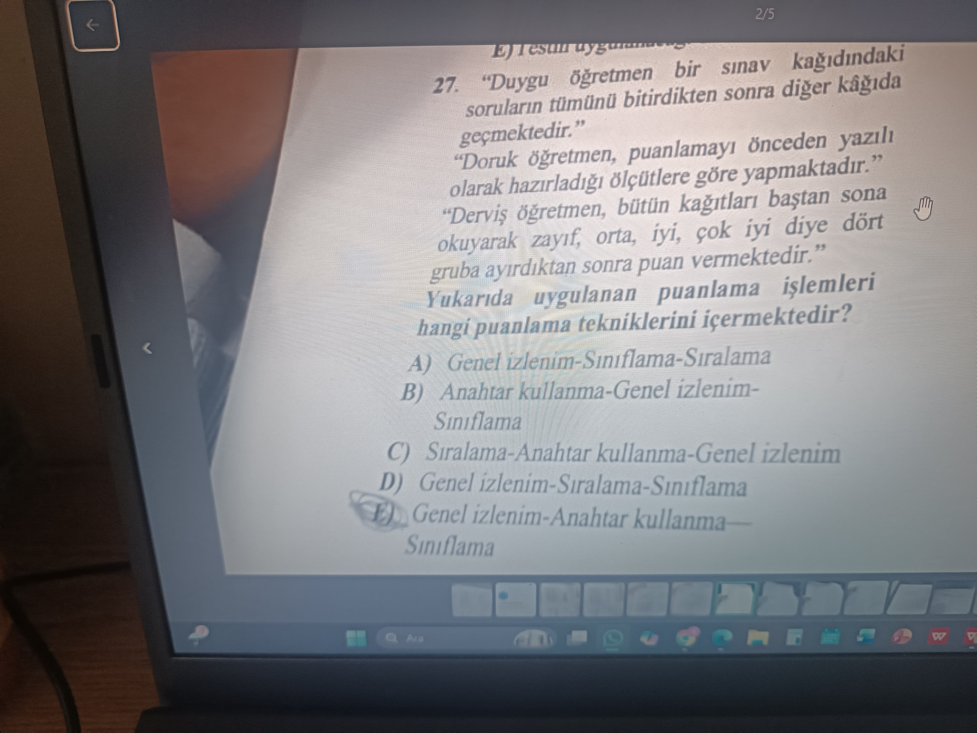“Doruk öğretmen, puanlamayı önceden yazılı olarak hazırladığı ölçütlere göre yapmaktadır.”