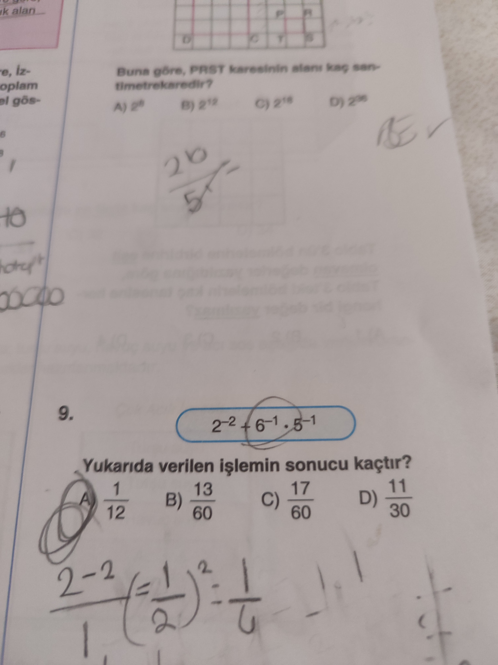 2^{-2} + 6^{-1} \cdot 5^{-1} ise cevap C şıkkı olmalı.