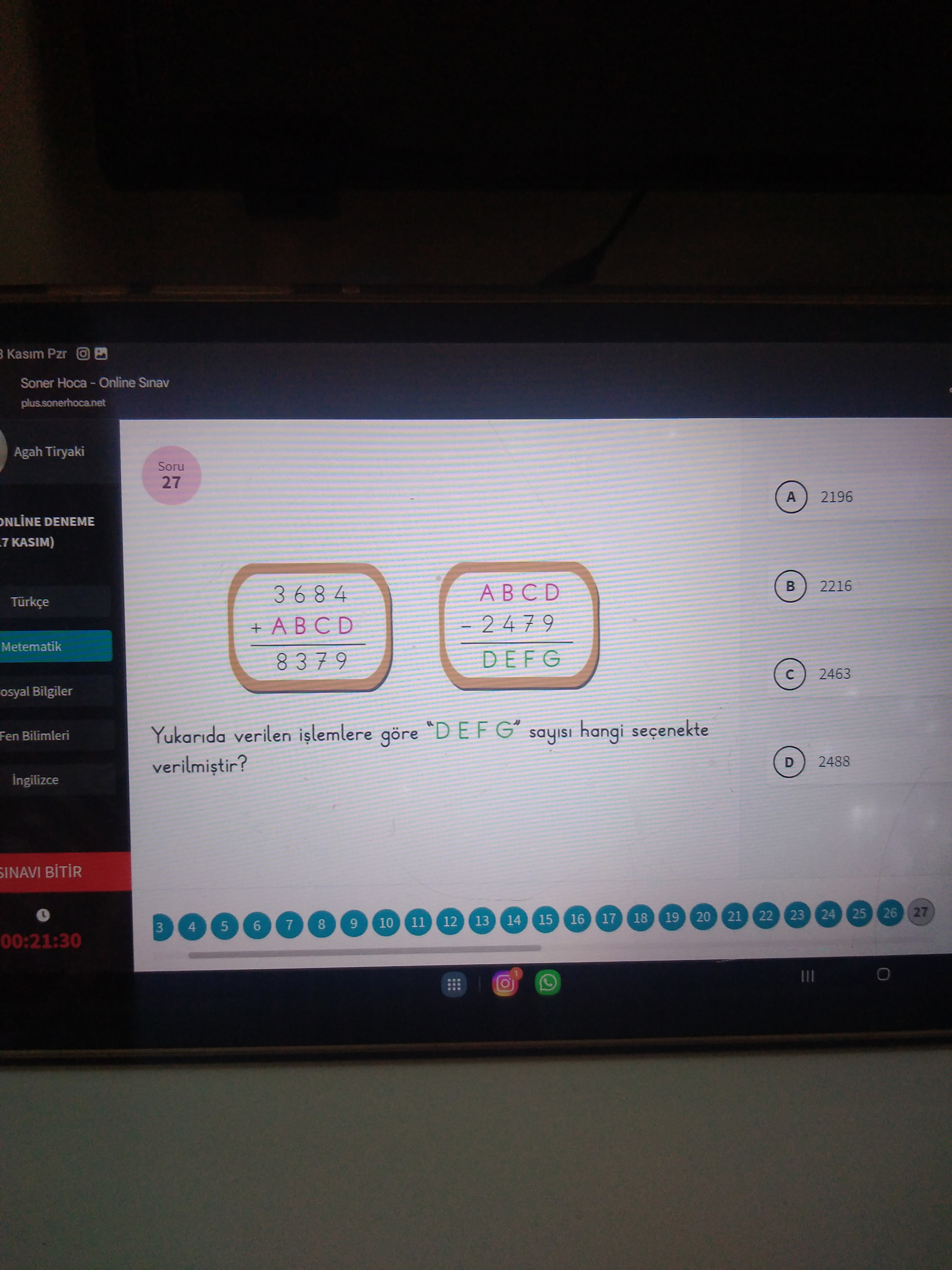 Bu tarz MEB denemesinde DEFG = 2463 çıkıyor ve bu da C şıkkında verilmiş.
