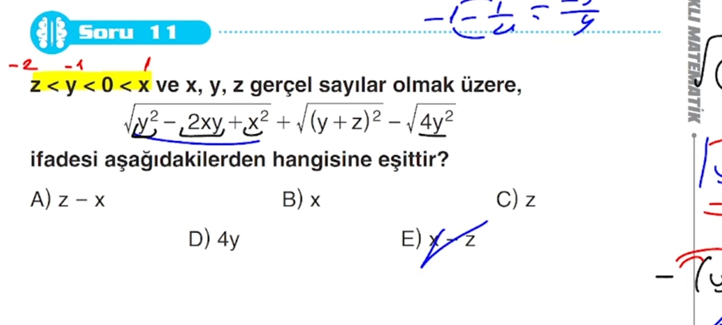 - x > 0, y < 0, z < y < 0 < x olduğuna göre: